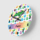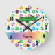 Personalized name alligator rainbow paws round clock
