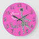 Personalized NAME and NUMBER Basketball Clocks for Her. Great Basketball Team Gifts for Girls. For Team Gifts, Personalize ONE Clock at a time, Add to Cart and Go Back to personalized the next basketball wall clock. Hot Pink Basketball Clock with her NAME and Jersey NUMBER typed into the 2 TEXT BOXES.