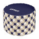 This modern pouf seating floor cushion is decorated with a solid color Dark Blue on the top and bottom and a pattern of repeating baseballs on the side. Name can be added on top to personalize, or delete example text. Great for sports lovers or dorm room. All Rights Reserved © 2014 Alan & Marcia Socolik.