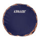 This modern pouf seating cushion is decorated with a solid color Dark Blue on the top and bottom and a pattern of repeating basketballs on the side. Name can be added on top to personalize, or delete example text. Great for basketball lover or dorm room. All Rights Reserved © 2014 Alan & Marcia Socolik.