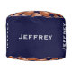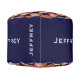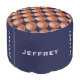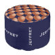 This personalized, modern pouf seating cushion is decorated with dark Navy Blue on the sides and repeating basketballs on top and bottom. Name, in light grey, repeats 6 times. It's easy to modify name, just change in one place (or delete). Great for someone who loves basketball. All Rights Reserved © 2014 Alan & Marcia Socolik.