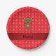 Personalized name bear red christmas trees paper plates