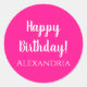 Personalized Name Birthday Hot Pink Happy Birthday Classic Round Sticker