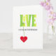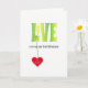 The LOVE on this card is in yellow and green colored capital letters overlaid with a pattern of white flowers. A red heart hangs from the letter L, and this can be personalized with your preferred name or text. Inside, the default message is "Wishing you love on your birthday And all year long". This too can be easily customized by typing in the box.