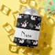 Modern and trendy Custom name sports black bowling balls and bowling pins pattern background and with white stripe personalized with just add your name gifts or monogram gifts or your initials for a unique gift. Sports gift ideas for men, women and boys and girls. Ideal for birthdays.