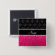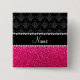 Personalized name black damask pink glitter button