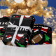 Modern and trendy sports football pattern with brown football, blue football helmet, snow, cute santa claus, santa hats, white red snowflakes, green red and yellow stars, green christmas trees with black background and with white black stripe personalized with just add your name gifts or monogram gifts or your initials for a unique gift. Sports gift ideas for men and boys and girls. Ideal for christmas presents.