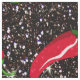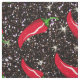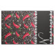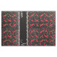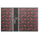 Chili peppers gift ideas. Red Chili peppers pattern with black glitter (NOT REAL GLITTER) background, with a pretty black diamonds (not real diamonds) with hearts and dots stripe personalized with your name gifts or monogram gifts or your initials.