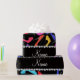 Modern, chic, fashionable and trendy high heel shoes with a rainbow colored leopard animal print in blue, green, red, orange, yellow and pink on a black background with a beautiful black diamonds (not real diamonds) with stylish hearts and dots stripe personalized with your name gifts or monogram gifts or your initials. Girly gift ideas for women. If you hit the customize it button you can change the color and type of font.