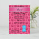Personalized name blue cat pink paws invitation