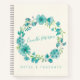 Personalized Name Blue Floral Wreath Stylish Chic Notebook