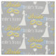Adorable wedding theme fabric to celebrate the nuptials ceremony of the lovely couple. Monogrammed with the bride-to-be's names or any special text. Design features elegant gold wedding ring bands with blue clouds background, a white wedding dress and heart, celebrating the bride and groom. Create custom bridal shower or bachelorette party favors using this fun bridal party theme.