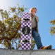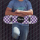 Personalized Name Checkerboard Pattern purple skateboard