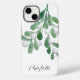 This Christmas phone case is decorated with watercolor green mistletoe and white berries.