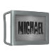 Add your name or other custom personalized word to this silver, gray and black belt buckle. Features a grunge stamped effect font, with a white highlight, and a striated gray shades background design. A stylish and custom touch to a handsome or rock and roll wardrobe. Great for guys men or rocker chicks.