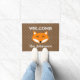 Personalized name cute red fox polka dots door mat