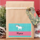 Turquoise/teal/aqua polka dots pattern with a cute rainbow unicorn and pink diamonds stripe (not real diamonds) personalized with your name gifts or monogram gifts or your initials
