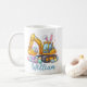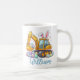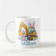 This personalized Easter excavator mug for kids was inspired by the pure joy little ones feel when their favorite things come together — construction trucks, Easter eggs, and seeing their own name in print. The playful design features a bright yellow excavator wearing bunny ears, scooping up colorful Easter eggs, making every sip feel like part of a springtime adventure.
