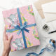 Personalized Name Elephant Baby Girl Pink and Gray Wrapping Paper