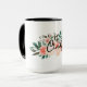 I was thrilled this came out so well. It is a very attractive mug with the colored handle and interior. Being able to personalize it was easy! It was designed for an end of the year thank you gift to the special recipient. perfect. Text lines up perfectly parallel to the top edge of the mug.