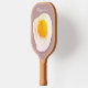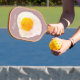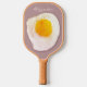 Personalized sport equipment pickleball paddle with a name in trendy calligraphy script handwriting. Retro boho aesthetic vibe, soft muted colors. For your outdoor fun activities with family and friends or as a thoughtful custom funny gift for her. Humorous gift for a food enthusiast who would rather be at a restaurant than on a sport field. Or who knows to combine healthy food with healthy sporty lifestyle. A fried egg image on a powder muted maroon brown trendy background. A versatile gift under 100 dollars, suitable for many occasions and celebrations, like birthday, Christmas, Mother’s Day, Christmas, graduation, even retirement gift.