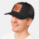 Custom Leather Patch Hat, Sytle: Adult Retro Trucker Cap, Color: Heather / Black, Shape: Circle