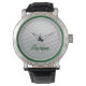 A golf ball decorates this stylish watch. Personalize this watch by changing the name. The design is from original art.