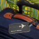 An elegant design for a luggage-tag... the image of a white jet on gray(custom color) background, to identify your belongings at the airport