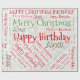 Happy birthday, Merry Christmas, Happy Christmas Birthday. Name or text to personalize.