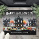 Add a playful touch to your Halloween entryway with this fun and festive doormat. Featuring a simple black and white design, the mat showcases a haunted house with orange accents from a spooky tree, pumpkins, and jack-o'-lanterns. Cute ghost and bat details complete the whimsical look. The typography features an elegant vintage grunge serif font that adds a touch of spooky sophistication to the design. Perfect for greeting guests at the door during your annual Halloween costume party or any spooky celebration.