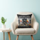 Add a spooky yet charming touch to your Halloween decor with this fun and festive throw pillow. Featuring a simple black and white design, the pillow showcases a haunted house with orange accents from pumpkins, jack-o'-lanterns, and a creepy tree. Playful ghost and bat illustrations complete the eerie look, while a mix of handwritten script calligraphy and a grunge sans serif font adds a stylish flair. Perfect for an annual Halloween party or cozy fall decor, this pillow is a fun and decorative addition to any space.