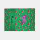 Create your own custom Personalized with just add your name (family name),monogram, greeting or initials or saying cute cartoon purple hippo with with green christmas trees, green candy canes and red bows Christmas pattern background and green stripe. Cute hippo Christmas gift ideas.