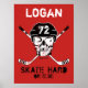 Personalized Name Hockey Skull Helmet Sticks Red poster. Hockey skull with crossed hockey sticks. SKATE HARD or else. Don't be one of those guys or gals that coast around and take long shifts. Skate hard every shift, make it count.