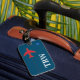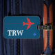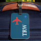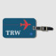 front side:A red plane on a blue (custom) background with the name-initials of the traveler