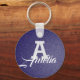 It's A Blue Key chain With a Personalized Name and Monogram in a White color