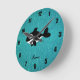 Personalized name killer whale turquoise glitter round clock