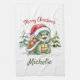 Personalized Name Merry Christmas Turtle in Santa Kitchen Towel