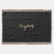 Custom, personalized, classy, elegant, modern, black check pattern, faux golden typography / script / font name, luxurious, all-season woven throw blanket. Simply type in your name, to customize. Modern luxurious woven throw blanket, great for home decor, makes a perfect gift for birthday, anniversary, wedding, graduation, mothers day, holidays, christmas, and more.