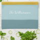 Add a stylish, personal touch to your kitchen with this custom color block kitchen towel, featuring soft blue and teal tones with a bold mustard accent. Perfect for drying dishes or simply enhancing your kitchen decor, this towel can be personalized with your family name for a unique touch. Ideal for housewarming gifts, family celebrations, or anyone looking to add custom decor to their home, this towel is both functional and fashionable.
