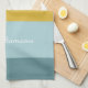 Personalized Name Modern Soft Blue Yellow Stripes Kitchen Towel