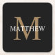 Personalized Name Monogram Black Square Paper Coaster
