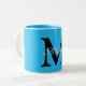 Personalized Name Monogram Blue Background Two-Tone Coffee Mug