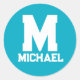 Personalized Name Monogram Blue Logo Classic Round Sticker