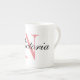 Personalized name monogram custom porcelain Bone China Mug. Add your own name or text. Elegant cup for men and women. Classy Birthday or Christmas gift idea for him or her. Make one for friends, family, coworker, colleague, boss, coffee lover, mom, dad, employee, teacher, coach etc. Customizable colors. Handy for home or office. Stylish script typography template. Use for tea, coffee, soup and more