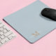 Modern, elegant and trendy mousepad featured here in dusty blue with tan monogram and white name typography. Colors can be customized to your choosing