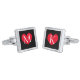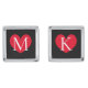 Personalized name monogram romantic heart square cufflinks. Elegant design with red love icon. Stylish gift idea for men. Make them for boyfriend, fiance, groom, father, dad, uncle, grandpa, husband, friend etc. Great for Birthday, wedding, Christmas, Father's day and more. All colors can be changed. Silver or gold plated.