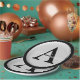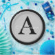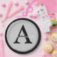 Personalize these silver metallic look button outlined in black round paper plates with any surname and single custom monogram.