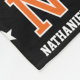 Cuddle up with a sports jersey-style blanket! This all-over pattern features a retro block font, stars, and is personalized with a monogram initial and name — perfect for individual names, family surnames or pet names. You can also customize the background color by using the design editor tool. Custom fleece blankets are great for staying warm and cozy, and make a fun and useful gift for kids, teens, family, friends and loved ones. Printed colors: orange, black, and white.