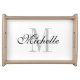 Personalized elegant name monogram serving tray. Cute monogrammed wedding party favor gift idea for bride and groom, guests, bridesmaids etc. Fancy initial letter and stylish script typography. Black and white. Fun for marriage, bridal shower, engagement, anniversary, housewarming etc. Add your own serving tray with family name, first name, surname etc. Available in small and large.