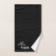 Personalized Name Mrs Smith White Black Hand Towel. (Option to select full bath set available including washer, hand towel, bath towel).